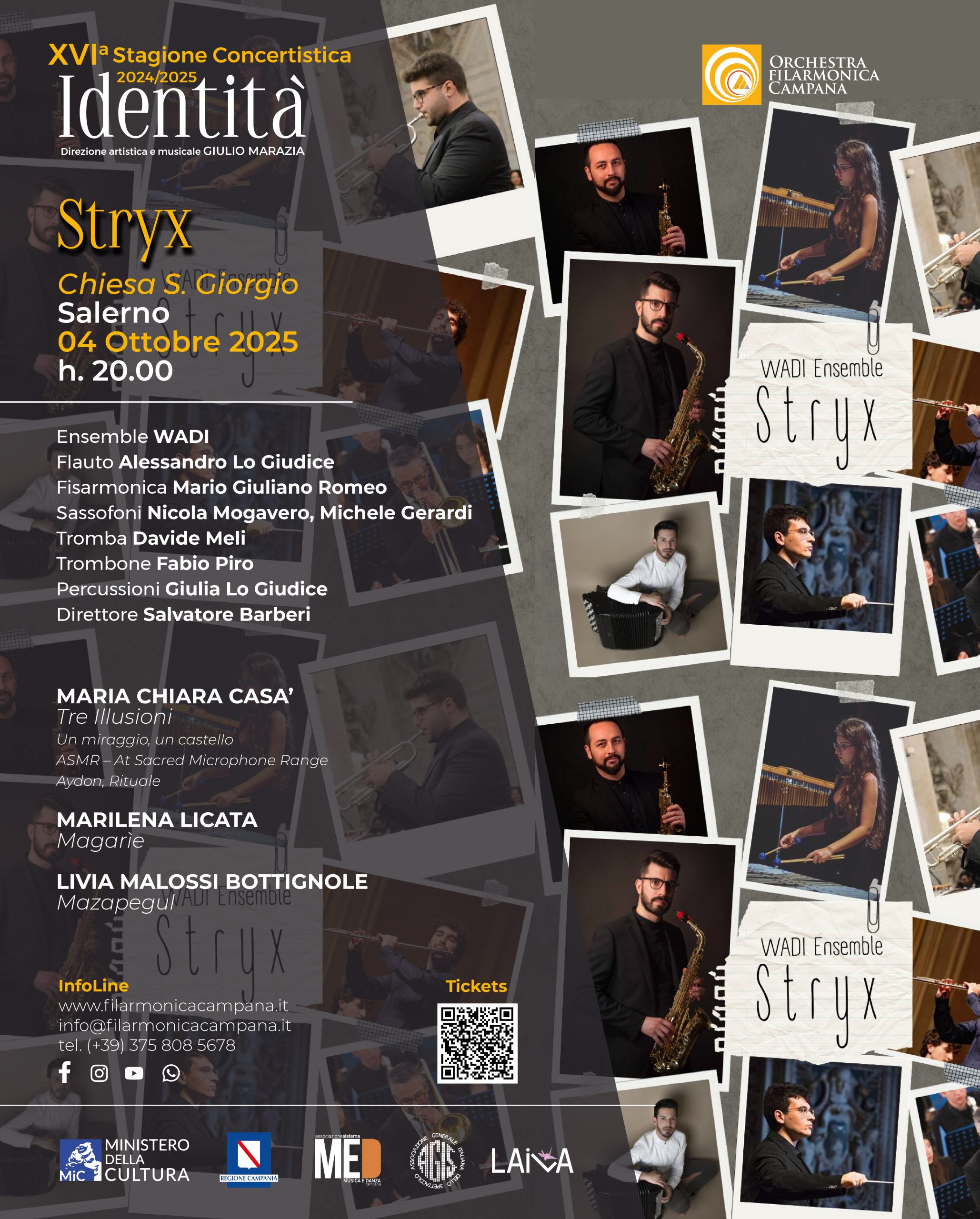 In “Stryx”, sguardo e invenzione di tre giovani compositrici – la romagnola Livia Malossi Bottignole e le siciliane Maria Chiara Casà e Marilena Licata – tessono a più mani un racconto sonoro di viaggi nell’orizzonte simbolico della civiltà mediterranea, con al centro le più iconiche figure femminili delle tradizioni popolari dei territori di provenienza delle autrici, ivi comprese quelle legate al magico, all’immaginifico ed alle legende. Stryx è una produzione di Moger arte e cultura con il sostegno di NUOVOIMAIE. È un viaggio su più dimensioni, andirivieni nello spazio e nel tempo, che prende vita grazie alle composizioni e alle interpretazioni dei musicisti del WADI: un’opera aperta, in cui le musiche delle compositrici muovono da riferimenti situati del patrimonio e della topografia italiani – come per esempio Rocchetta Mattei sulle colline bolognesi o Piazza delle Sette Fate a Palermo – e si passano il testimone senza soluzione di continuità. È insomma una ritessitura tra sogno e veglia, tra documentazione etnografica e immaginazione artistica, in cui le figure magiche del femminile delle tradizioni popolari, come le fate e le streghe, vengono connesse e ricondotte alle loro radici topico- allegoriche nelle mitologie antiche del Mediterraneo – come, per esempio le tante Ninfe delle acque e delle sorgenti di cui è costellato il territorio italiano – e che hanno informato la cultura italiana nei secoli. Dall’invenzione delle compositrici WADI – le tre “streghe” d’oggi – e con uno strumentario appositamente scelto per il suo potenziale evocativo delle tradizioni tra colto e popolare, prende così forma un gioco di rifrazioni e connessioni immaginifiche tra i diversi codici musicali – tradizionali e ultracontemporanei – e i valori e le tracce storico-geografiche delle radici mediterranee nella cultura italiana, attraverso sguardi e tessiture dal punto di vista femminile.